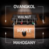 The luxurious aesthetics of Ovangkol consisting of cinnamon-brown with darker streaks of color is hard to resist. Known as a great overall tone wood, Ovangkol shares similar tone characteristics as Rosewood and Bubinga with a slightly fuller midrange and a top end that’s not quite bright sounding, but the strategically placed Maple in the centre makes up for the missing highs. The combination of Ovangkol top and Maple core, together with warmer sounding Mahogany wings provides a perfect mixture of balanced tone.